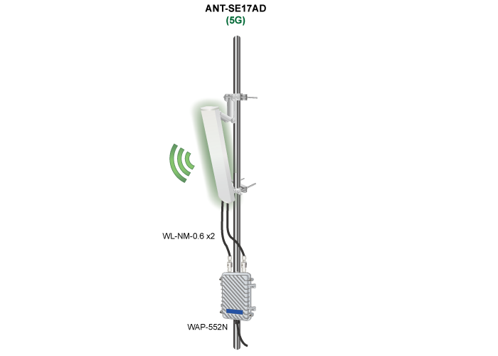 • accessories_table: <table class="common_table"> <thead> <tr> <th colspan="2">Ordering Information</th> </tr> </thead> <tbody> <tr> <td class="text-center align-middle"> <h3 class="h6 m-0">ANT-SE17AD</h3> </td> <td>5GHz 17dBi Dual-Polarity Sector Antenna</td> </tr> </tbody> </table>