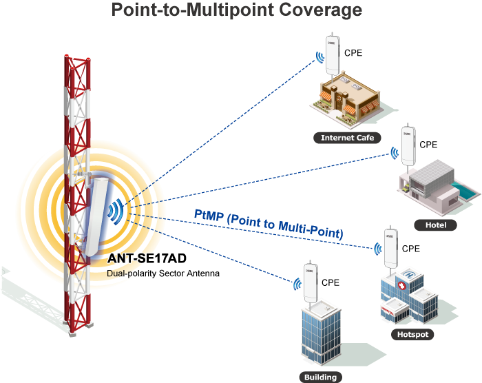 • applications_tab: <p>PLANET ANT-SE17AD Outdoor 5GHz 17dBi Dual-Polarity Sector Antenna, with its optimized dimension design, can be flexibly installed in any outdoor wireless environment to meet today’s wireless LAN requirements for full-day operation, such as wide wireless signal coverage, and improved signal strength and quality. The ANT-SE17AD Dual-Polarity Directional Antenna is perfectly helpful for 802.11ac devices in multithreaded communications. This enables the wireless device to transmit data on one polarization and receive data on the other polarization simultaneously for PtMP function. Obviously, all the networking equipment in the wireless network must be multithreading complaint.</p><p><img style="display: block; margin-left: auto; margin-right: auto;" src="https://www.planet.com.sa/planet-storage/2025/01/ANT-SE17D_ANT-SE17AD-61.png" alt="" width="701" height="532"></p><p>To commit itself to the wireless long-distance connectivity, PLANET Wire-Free system provides a variety of antennas, cables and other accessories for 5GHz ISM band applications where more RF gain power is required to increase the convergence of the installations in the wireless state.</p>