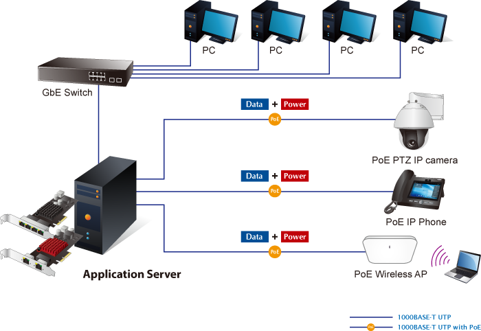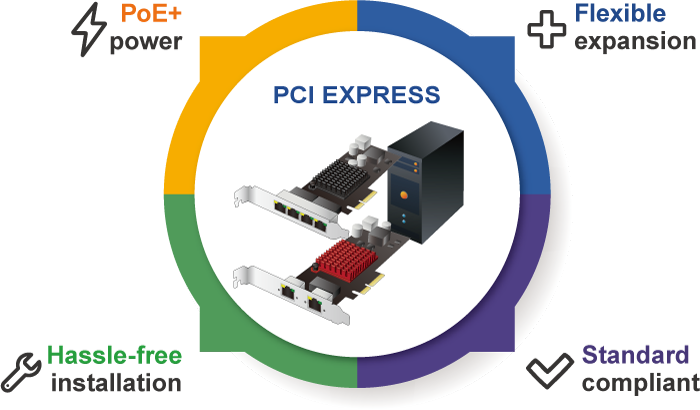 • product_editor_4421_tab_content: <ul> <li>Intel ® server-grade GbE Mac Controller</li> <li>PCI Express (PCIe) x4 slot</li> <li>Supports 2-port Gigabit Ethernet MAC Controller</li> <li>IEEE 802.3at compliant with up to 30W power per port with a total power budget of 60W</li> <li>PCI Express 12V power supply without external power input</li> <li>Powered device (PD) auto detection and classification</li> <li>IEEE 802.1q VLAN ID tagged</li> <li>9.5K jumbo frame size</li> <li>Low profile and full-height bracket</li> <li>Complies with Microsoft, Linux and Mac platforms</li> </ul>