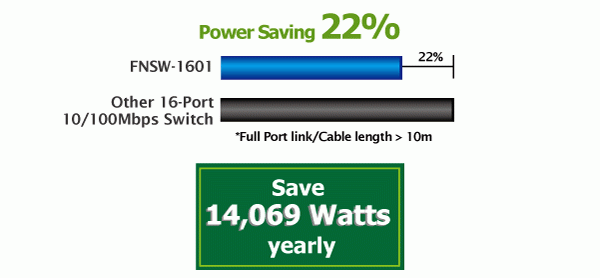 The FNSW-1601 incorporates advanced Green Networking technology: