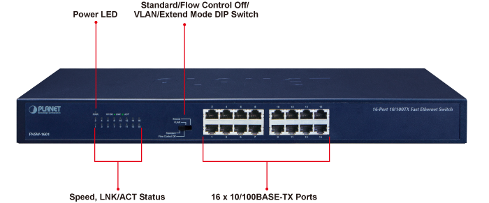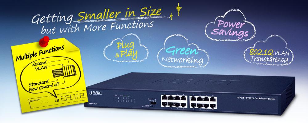 PLANET Green Networking Switch- FNSW-1601 is an ideal solution in line with the energy-saving trend worldwide. The FNSW-1601 is a 16-port 10/100BASE-TX Fast Ethernet Switch upgraded from earlier version and brings both benefits of energy saving and high performance.