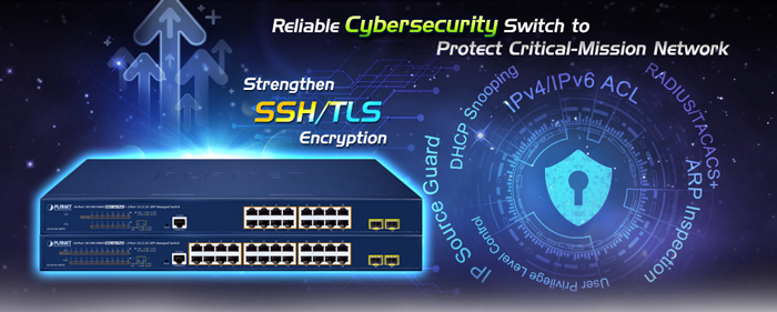 Moreover, the GS-4210-24P2S offers secure remote management by supporting SSHv2, TLSv1.2/TLSv1.3 and SNMP v3 connections which encrypt the packet content at each session.