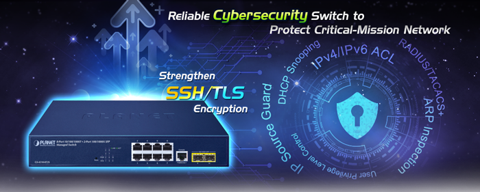The GS-4210-8T2S supports SSHv2 and TLS protocols to provide strong protection against advanced threats. It includes a range of cybersecurity features such as DHCP Snooping, ARP Inspection Protection, 802.1x port-based and network access control, RADIUS and TACACS+ user accounts management, SNMPv3 authentication, and so on to complement it as an all-security solution.