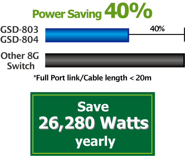 The GSD-803 incorporates two advanced Green Networking technologies and is able to provide power savings of up to 40% but maintains high performance efficiently.