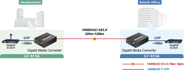 The GT-915A provides auto MDI/MDI-X on its TP port and built-in Link Fault Pass-through function (LFP). The LFP function includes Link Loss Carry Forward (LLCF) and Link Loss Return (LLR), both of which can immediately alarm administrators the problem of the link media and provide efficient solution to monitoring the net.