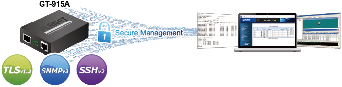 The GT-915A comes with enhanced cybersecurity to fend off cyberthreats and cyberattacks. It supports SSHv2, TLSv1.2 and SNMPv3 protocols to provide strong protection against advanced threats. Served as a key point to transmit data to customer’s critical equipment in a business network, the cybersecurity feature of the IGT-900-Series protects the management and enhances the security of the mission-critical network without any extra deployment cost and effort.