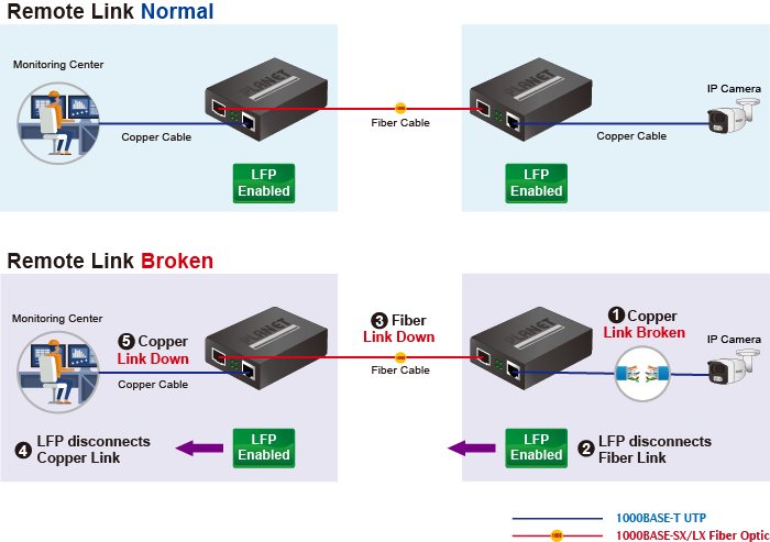 - LLCF means when a device connected to the converter and the TP line loses the link, the converter’s fiber port will disconnect the link of transmission.