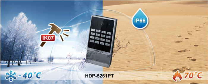 PLANET HDP-5261PT Vandalproof Video Door Phone is designed for offices, residential buildings, and other facilities that require secure visitor access control. With its high-quality audio and 2MP HD video camera, the identification and voice of the visitor can be clearly seen and heard once the visitor presses the call button of the phone. The HDP-1261PT works like an intercom. As its name implies, it is vandalproof and has a video feature.