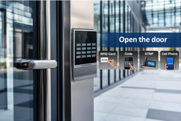 • Unlock the door via RFID or remote DTMF