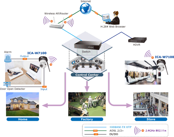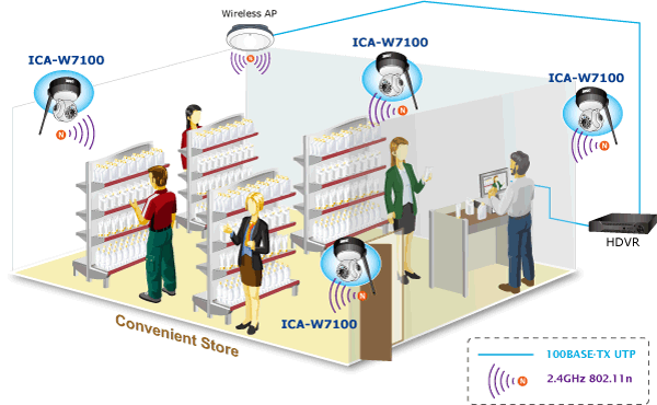 The ICA-W7100 adopts IEEE 802.11n wireless technology to communicate at up to 150Mbps wireless signal rate and ensures secure transmission with WEP and WPA encryptions. The wireless N functionality enables rapid integration into the wireless network and offers a flexible choice of the site.