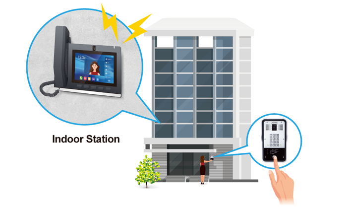 The ICF-2000 offers two installation options: desktop and wall mounting. Equipped with an adjustable camera, it can conduct video calls with the access control system. Users can view the access point’s video feed on their phone screens, enabling remote door unlocking and other applications.