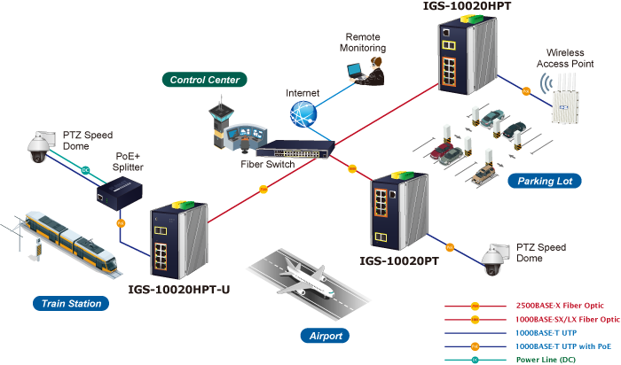 The IGS-10020PT also protects customer’s industrial network connectivity with switching recovery capability that is used for implementing fault tolerant ring and mesh network architectures. If the Industrial network was interrupted accidentally, the fault recovery times could be less than 50ms to quickly bring the network back to normal operation.