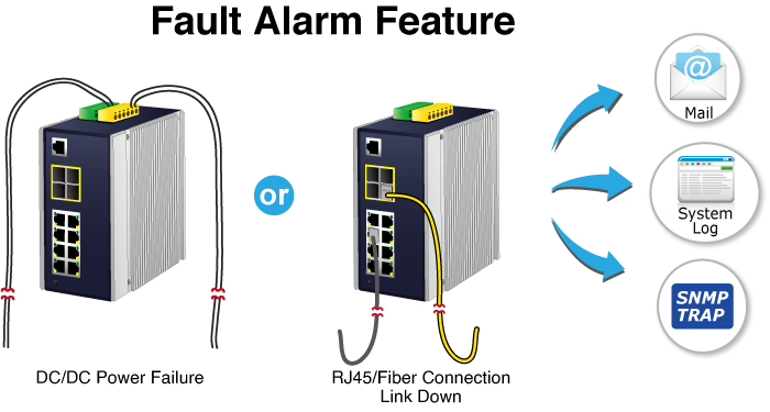 The IGS-12040MT provides event alert function to help to diagnose the abnormal device owing to whether or not there is a break of the network connection, or the rebooting response.