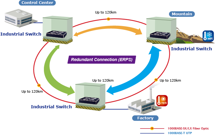 The IGS-4215-4UP4T2S supports redundant ring technology and features strong, rapid self-recovery capability to prevent interruptions and external intrusions. It incorporates advanced ITU-T G.8032 ERPS (Ethernet Ring Protection Switching) technology, Spanning Tree Protocol (802.1s MSTP) into customer’s network to enhance system reliability and uptime in various environments.