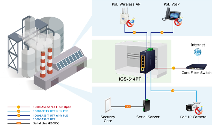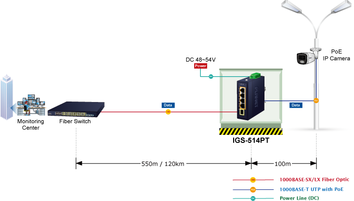 Thus, building a network solution of FTTH (Fiber to the Home), FTTC (Fiber to the Curb) for ISPs or FTTB (Fiber to the Building) for enterprises becomes so easy to users when long-distance deployment is employed. The IGS-514PT can handle extremely large amounts of data in a secure topology linking to a metro switch, backbone or high-capacity server.