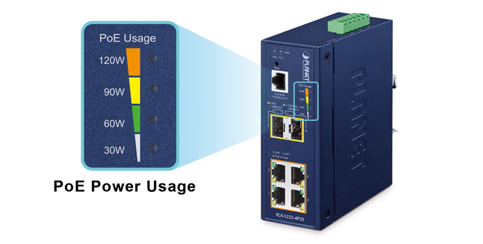 As it is the industrial managed PoE+ switch for surveillance, wireless and VoIP networks, the IGS-5225-4P2S features the following special PoE management functions: