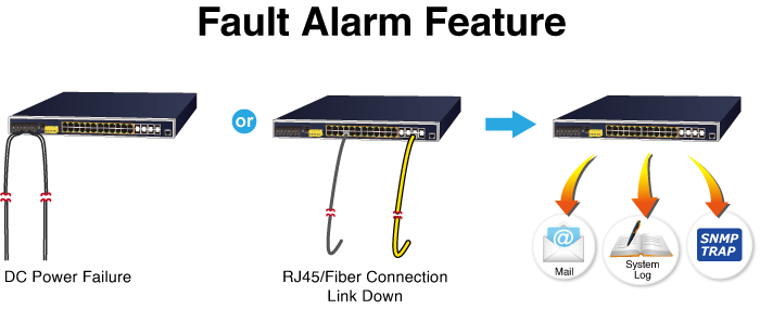 The IGS-6325 Series supports a Fault Alarm feature which can alert the users when there is something wrong with the switches. With this ideal feature, the users would not have to waste time finding where the problem is. It will help to save time and human resource.