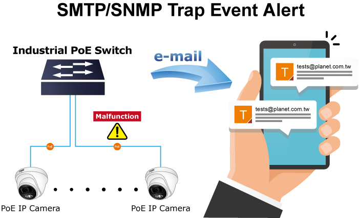 The IGS-6325 PoE++ Series provides event alert function to help to diagnose the abnormal device owing to whether or not there is a break of the network connection, or the rebooting response.