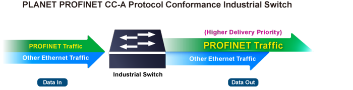 The IGS-820TF-PN is specially designed to support PROFINET Conformance Class A (CC-A), providing industrial users with reliable and real-time Ethernet communication in automation networks, making it ideal for use in factory automation and control applications. It features an enhanced function that recognizes PROFINET traffic and assigns it higher delivery priority. Upon detecting PROFINET packets, the IGS-820TF-PN forwards them first before processing other Ethernet traffic. With this capability, the IGS-820TF-PN becomes an ideal industrial unmanaged switch for ensuring fast and efficient PROFINET communication.