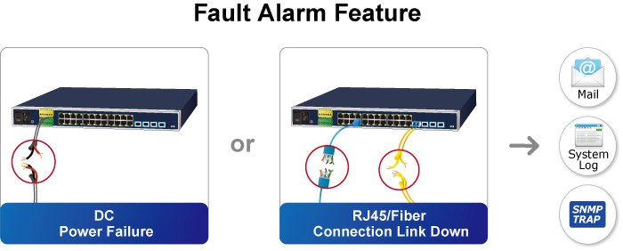 The IGS-R4215-24T4X incorporates a Fault Alarm feature that promptly notifies users of any issues with the switches. This valuable feature eliminates the need for users to spend time locating the problem, resulting in significant time and human resource savings.