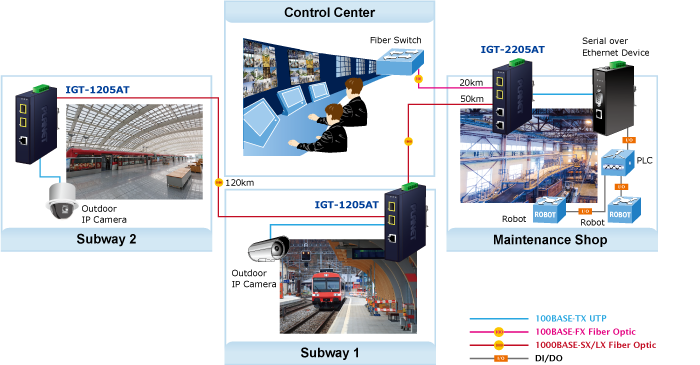 The two SFP ports are compatible with 100BASE-FX, 1000BASE-X and 2500BASE-X SFP (Small Form Factor Pluggable) fiber-optic transceivers. The fiber optic uplink capability guarantees the throughput to all nodes hooked into the network and the Gigabit Ethernet distance can be extended from 300 meters (Multi-mode fiber cable) to 20/40/80/120 kilometers (Single-mode fiber cable), and also the Fast Ethernet distance can be extended from 2km (Multi-mode fiber cable) to 20/40/60 kilometers (Single-mode fiber cable). They are well suited for applications within the factory data centers and distributions.