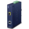 PLANET IGT-805AT is an Industrial Gigabit Media Converter providing non-blocking wire-speed performance and great flexibility for Gigabit Ethernet extension in harsh industrial environment. It is equipped with one 10/100/1000BASE-T RJ45 copper and one 100/1000BASE-X SFP fiber optic interface delivered in an IP30 rugged strong case with redundant power system. The IGT-805AT is well suited for applications in deploying surveillance system, and securing control and wireless service in climatically demanding environments with wide temperature range from -40 to 75 degrees C. With 9K jumbo frame feature support, the IGT-805AT can handle extremely large amounts of data transmission in a secure topology linking to a backbone or high-power servers.