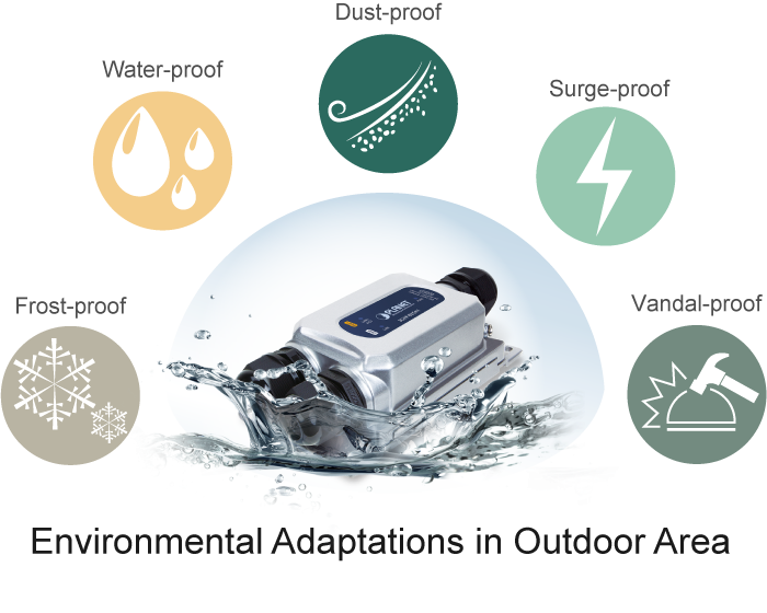 The IGTP-825AT is ideal for installing an extended range of outdoor PoE devices such as outdoor PoE wireless access points, outdoor PoE IP cameras, outdoor PoE IP intercoms and many more. The IGTP-825AT is equipped with 3 waterproof cable glands for direct-attach applications. Assembled with a waterproof cable gland, it can make the general connector weather-proof and provides a tight and strong connection. Moreover, it comes with the industrial protection rating of IP67 capable of withstanding humidity, dirt, dust, shock, vibrations, heat and cold.