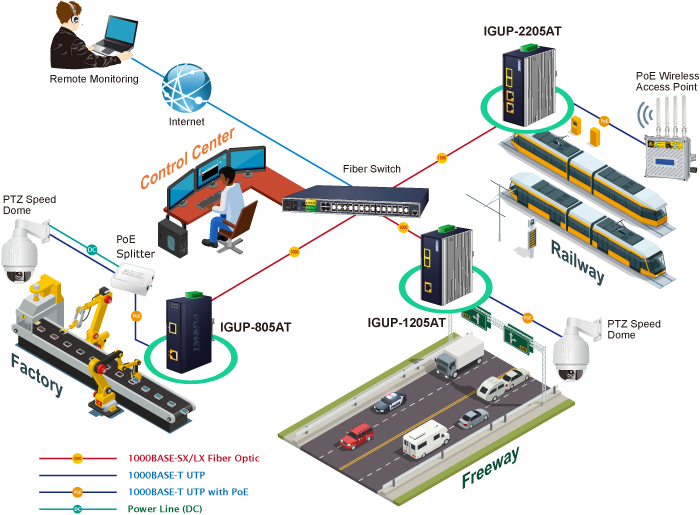 The IGUP-1205AT is specifically designed with durable components and strong housing case to operate reliably in electrically harsh and climatically demanding environments like plant floors or curbside traffic control cabinets. The IGUP-1205AT is packaged in a compact, IP30 rugged case that allows either DIN-rail or wall mounting to have the efficient use of cabinet space. With IP30 rugged case protection and PoE design, the IGUP-1205AT is ideal for service providers, campuses and public areas to deploy PoE wireless access points, IP cameras or IP phones in any places easily and efficiently with cost-effectiveness. It can also operate in wide temperature range of -40 to 75 degrees C, so it can be placed in almost any location.