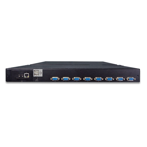 PLANET IKVM-210-08M Combo VGA LCD IP KVM Switch comes with a rack-mountable keyboard, 17″ LCD and touchpad in a single console that occupies only 1U of rack space. From across the room, down the street or halfway around the globe, the IKVM-210-08M can be accessed from any computer on the LAN, WAN or Internet. Easy to install and use, it’s the optimal solution for controlling up to 8 computers/servers.