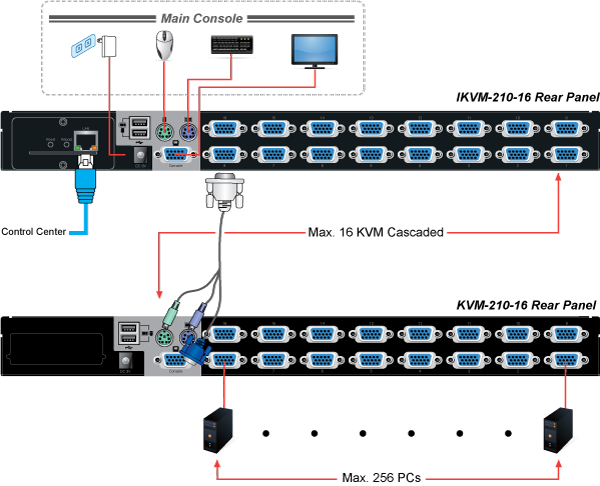 The IKVM-210-16 is the most cost-effective and simple solution for controlling a group of PCs in the network. Multiple computers can be managed via only one single set of monitor, keyboard and mouse directly. No software drivers or system configuration are required. iMac, Power Mac and Sun systems are also supported.
