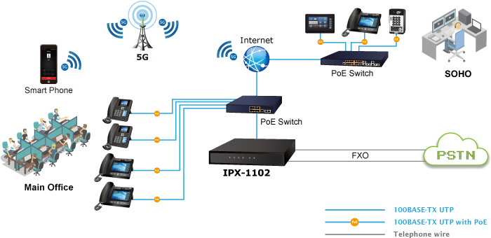 Cost-effective, easy-to-install and simple-to-use, the IPX-1102 converts standard telephones into IP-based networks. It enables the service providers and enterprises to offer users traditional and enhanced telephony communication services via the existing broadband connection to the Internet or corporation network.