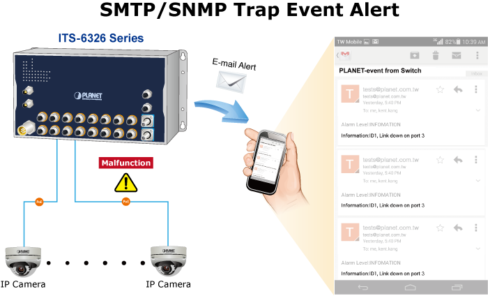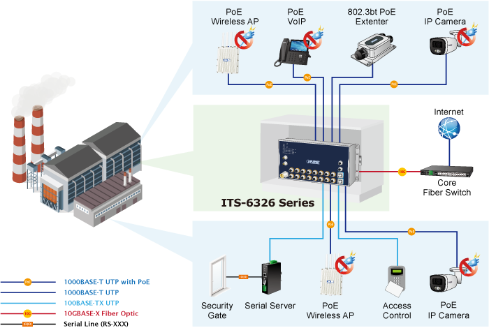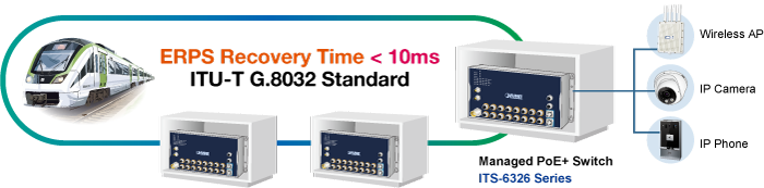 • product_editor_4418_tab_content: <strong>Designed for Industrial and Transportation Applications</strong> Providing up to 16 PoE+ in-line power interfaces, the ITS-6326 series can easily build a power system to centrally control IP phone systems, IP camera systems, or wireless APs in industrial and transportation environments. <img class="img-fluid aligncenter" src="https://planet.com.tw/storage/products/49818/ITS-6326-Series-5.png" alt="" width="700" height="470" /> <img class="img-fluid aligncenter" src="https://planet.com.tw/storage/products/49818/ITS-6326-Series-2.png" alt="" width="700" height="429" /> <strong>Bypass Relay Solution for Daisy Chain Topology</strong> In a daisy chain topology, a single failed node can disrupt the links of other switches. In railway communication systems with interconnected networks, a failed upstream link in one train car will impact the downstream link in other train cars. To prevent such failures, the ITS-6326 series, equipped with a bypass function, offers two ports with a bypass relay feature. If one of the switches experiences a power loss, the other ports of the switch will bypass the failed relay circuit, allowing network traffic to continue flowing smoothly and ensuring continuous system operation. <img class="img-fluid aligncenter" src="https://planet.com.tw/storage/products/49818/ITS-6326-Series-7.png" alt="" width="700" height="564" />