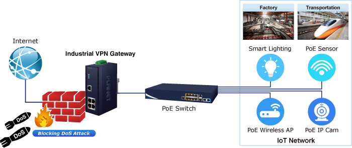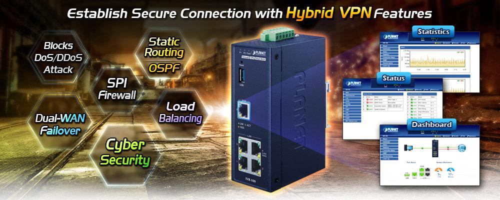 The innovation of the Internet has created tremendous worldwide opportunities for e-business and information sharing. It has become essential for businesses to focus more on network security issues. The demand for information security has become the primary concern for the enterprises. To fulfill this demand, PLANET has launched the IVR-100 Industrial VPN Security Gateway, an all-in-one appliance that carries several main categories across your industrial network security deployments: Cyber security, SPI firewall security protection, policy auditing (Content Filtering, VPN Tunnel and VLAN), and easy management (Setup Wizard, QoS and Dashboard). Furthermore, its Dual-WAN Failover and Outbound Load Balance features can improve the network efficiency while the web-based interface provides friendly and consistent user experience. For the harsh environment, the IVR-100 can not only operate stably under temperature range from -40 to 75 degrees C, but also is equipped with a compact IP30 metal case that allows either DIN-rail or wall mounting for efficient use of cabinet space.