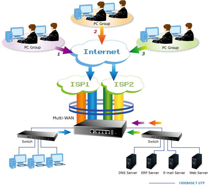 The IVR-100 can connect dual WANs with up to two different ISPs. It creates a stable and qualified VPN connection for many important applications such as VoIP, video conferencing and data transmission.