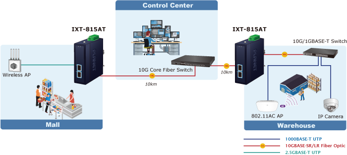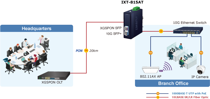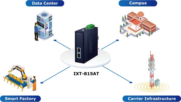 With dual high-speed ports, the IXT-815AT can connect to servers, switches, storage systems, and wireless access points. It also supports bridging between 10GPON and 10Gbps Ethernet, making it ideal for data center cloud computing, enterprise backbone networks, and inter-building deployments.