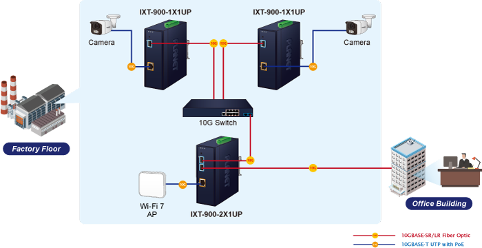 Featuring a 10GBASE-T copper port and a 10G SFP+ port, it combines the advantages of 10G connectivity with the versatility of both fiber and copper ports. Compact yet powerful, the IXT-900-1X1UP is an ideal choice for businesses seeking to enhance their network’s speed and flexibility, making it a top choice for modern network upgrades.