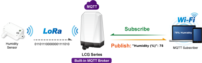 Additionally, the built-in MQTT broker in the LCG-300 series facilitates data parsing and collection, enabling users to obtain data quickly and conveniently. This is possible both through the internal MQTT broker and an external MQTT broker. This functionality helps reduce the costs associated with building network servers and minimizes the complexity of the network architecture.