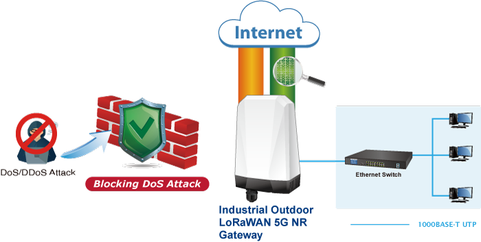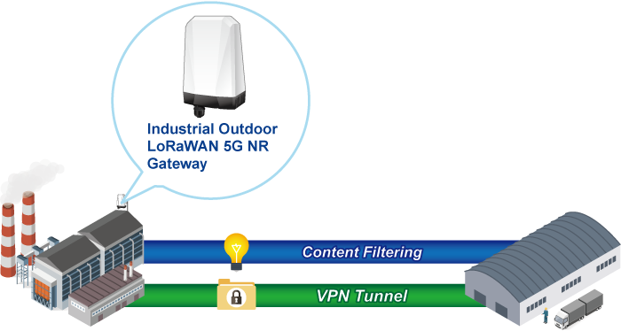 • product_editor_4421_tab_content: <strong>Highlights</strong> <ul> <li>Supports global 5G NR (NSA/SA) and 4G LTE with a Nano-SIM card slot for reliable cellular access.</li> <li>Compliant with IEEE 802.11b/g/n standards for wireless connectivity.</li> <li>Supports EU868, IN865, RU864, US915, AU915, KR920 and AS923 frequency bands for various regional applications.</li> <li>8 programmable parallel paths for better data processing</li> <li>10/100BASE-T Ethernet LAN interface with 802.11at PoE+ support and built-in 1.5KV electromagnetic isolation protection</li> <li>Built-in reverse phase, overvoltage, and lightning protection</li> <li>Supports both 100-277V AC input and 802.11at PoE+ power.</li> <li>Integrated MQTT broker for efficient IoT data communication</li> <li>Supports SSL VPN and robust hybrid VPN protocols (IPSec/PPTP/L2TP over IPSec) for secure data transmission.</li> <li>Features Stateful Packet Inspection (SPI) firewall and content filtering to block DoS/DDOS attacks and manage port range forwarding.</li> <li>Compatible with Planet NMS controller system and CloudViewerPro app for easy remote management and monitoring.</li> <li>Operates in -40°C to 75°C; IP67-rated for dust and water resistance.</li> </ul>   <strong>Hardware</strong> <ul> <li>1 x 10/100BASE-T RJ45 LAN port with 802.3at PoE+</li> <li>2 x 5G NR antennas</li> <li>1 x Nano-SIM card slot</li> <li>1 x LoRa antenna</li> <li>1 x Wi-Fi antenna</li> <li>1 x GPS antenna</li> <li>1 x reset button</li> </ul>   <strong>Cellular Interface</strong> <ul> <li>Supports multi-band connectivity with 5G NR (NSA/SA), LTE-FDD, LTE-TDD, and WCDMA.</li> <li>Built-in SIM and broadband backup for network redundancy</li> <li>Four detachable antennas for 5G NR connection</li> <li>LED indicators for signal strength and connection status</li> </ul>   <strong>LoRa Interface</strong> <ul> <li>Supports EU868, IN865, RU864, US915, AU915, KR920 and AS923.</li> <li>8 programmable parallel demodulation paths</li> </ul>   <strong>RF Interface Characteristics</strong> <ul> <li>Features 2.4GHz (802.11b/g/n) band for configuration.</li> <li>2T2R MIMO technology for simple wireless connection</li> </ul>   <strong>IP Routing Feature</strong> <ul> <li>Static route</li> <li>Dynamic route</li> <li>OSPF</li> </ul>   <strong>Firewall Security</strong> <ul> <li>Cybersecurity</li> <li>Stateful Packet Inspection (SPI) firewall</li> <li>Blocks DoS/DDoS attack</li> <li>Content filtering</li> <li>MAC filtering and IP filtering</li> <li>NAT ALG (Application Layer Gateway)</li> <li>Blocks SYN/ICMP flooding</li> </ul>   <strong>VPN Features</strong> <ul> <li>IPSec/Remote Server (Net-to-Net, Host-to-Net), GRE, PPTP Server, L2TP Server and SSL Server/Client (Open VPN)</li> <li>Max. Connection Tunnel Entries: 30 VPN tunnels,</li> <li>Encryption methods: DES, 3DES, AES, AES-128/192/256</li> <li>Authentication methods: MD5, SHA-1, SHA-256, SHA-384, SHA-512</li> </ul>   <strong>Networking</strong> <ul> <li>DHCP server/NTP client for LAN</li> <li>Protocols: TCP/IP, UDP, ARP, IPv4, IPv6</li> <li>Port forwarding; IGMP; UPnP; SNMPv1,v2c, v3</li> <li>DDNS: PLANET DDNS, Easy DDNS, DynDNS and No-IP</li> <li>MQTT Broker</li> </ul>   <strong>Others</strong> <ul> <li>Setup wizard</li> <li>Dashboard for real-time system overview</li> <li>Supported access by HTTP or HTTPS</li> <li>Auto reboot</li> <li>PLANET NMS System and Smart Discovery Utility for deployment management</li> <li>Planet CloudViewerPro app for real-time monitoring</li> </ul>
