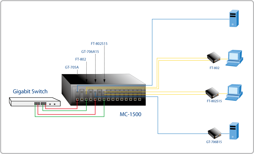 The independent power supply in each bay of the MC 1500 can let you freely install the converters without interrupting the rest of the networks. Moreover, each bay of the media center can be deployed like PLANET’s converter family-like Ethernet, Fast Ethernet twisted pair to fiber-optic conversion, Gigabit SX to LX conversion, etc.