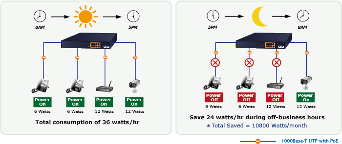 Besides being used for IP surveillance, the MGS-6320-8HP2X is certainly applicable to build any PoE network including VoIP and wireless LAN. Under the trend of energy saving worldwide and contributing to the environmental protection on the Earth, the MGS-6320-8HP2X can effectively control the power supply besides its capability of giving high watts power. The “PoE schedule” function helps you to enable or disable PoE power feeding for each PoE port during specified time intervals and it is a powerful function to help SMBs and enterprises save energy and budget.