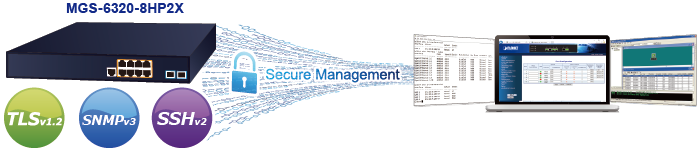 The MGS-6320-8HP2X also provides DHCP Snooping, IP Source Guard and Dynamic ARP Inspection functions to prevent IP snooping from attack and discard ARP packets with invalid MAC address. The network administrator can now build highly-secure corporate networks with considerably less time and effort than before.