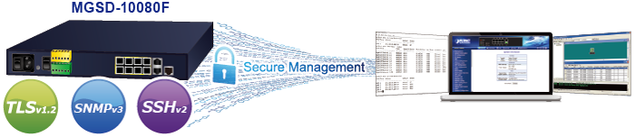 Moreover, the MGSD-10080F offers secure remote management by supporting SSHv2, TLSv1.2 and SNMPv3 connections which encrypt the packet content at each session.
