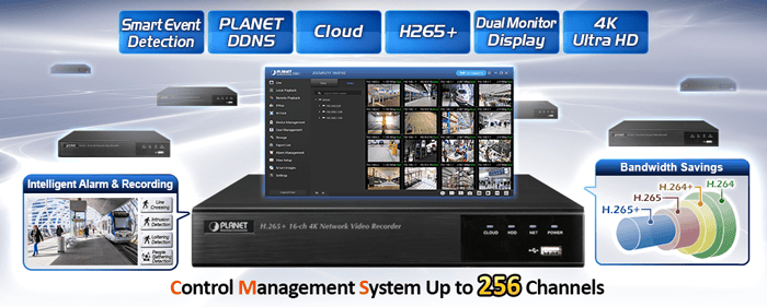 PLANET NVR-1600 is a brand-new 16-channel Linux embedded network video recorder (NVR) for campuses, communities, restaurants and more. Designed for IP surveillance applications with HDMI local display, the NVR-1600 supports IP cameras with up to 4K and H265/H264/H265+/H264+ video codec for high-quality real-time monitoring, recording and playback. It also supports 4K video resolution on any HD monitor.
