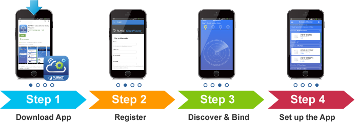 PLANET CloudViewerPro App enhances user experience by following the simple procedure to set up a cloud connection within one minute.