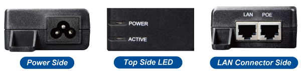 With concepts of “Easy to installâ€, “Plug and Play†and “Simple troubleshooting” for business and home users, the POE-173 is an all-in-one, single-port PoE+ injector with internal power supply. In the compact size housing, the POE-173 provides one 100-240V AC input socket on its front panel, two LEDs (System POWER and PoE ACTIVE ) on the top side and two RJ-45 ports (POE port and LAN port) on the rear panel. Simply plug in the Ethernet cables and power cord, and the POE-173 is ready to provide high speed network communication and ultra power PoE injector functions simultaneously with no need of software configuration.