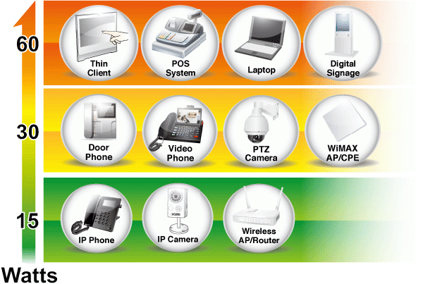Maximum Power delivered by PSE | 15.4 watts | 30 watts | 60 watts |
