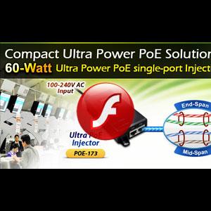 The POE-173 is a Single-Port, Ultra Power over Ethernet Injector with a maximum of up to 60 watts of power output over Ethernet cables. It is designed specifically to meet the demand for growing higher power required network equipment such as: