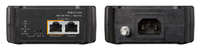 It is easy to install the PoE injector by way of Plug and Play and comes with simple troubleshooting, making it easy for business and home users to own it. Besides, the POE-175-95 comes in compact housing, and has a built-in internal power supply. On the side panel of the POE-175-95 features one 100-240V AC input socket, real-time LEDs (Power LED, PoE-in-Use LED and PoE Max LED) and two RJ45 ports — Ethernet port and Ethernet+DC port. Simply plug in the Ethernet cables and AC power cord, and the POE-175-95 is ready to provide high-speed network communication and the 802.3bt PoE++ injector functions simultaneously with no need of software configuration.