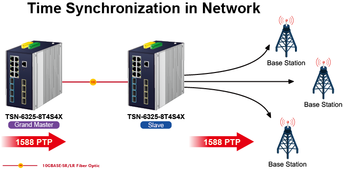 PLANET TSN-6325-8T4S4X provides real-time, low-latency network communication for industrial automation, 5G NR networks, Industry 4.0, 4K/8K video streaming, and VR/AR gaming industry by using the Time-sensitive Networking (TSN) technology and IEEE 1588 Precision Time Protocol (PTPv2) for time synchronization on all ports.