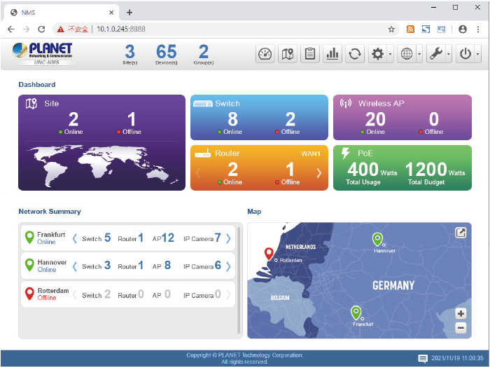 PLANET NMS solution features intuitive dashboard, topology and map viewing to make network management efficient and effective.